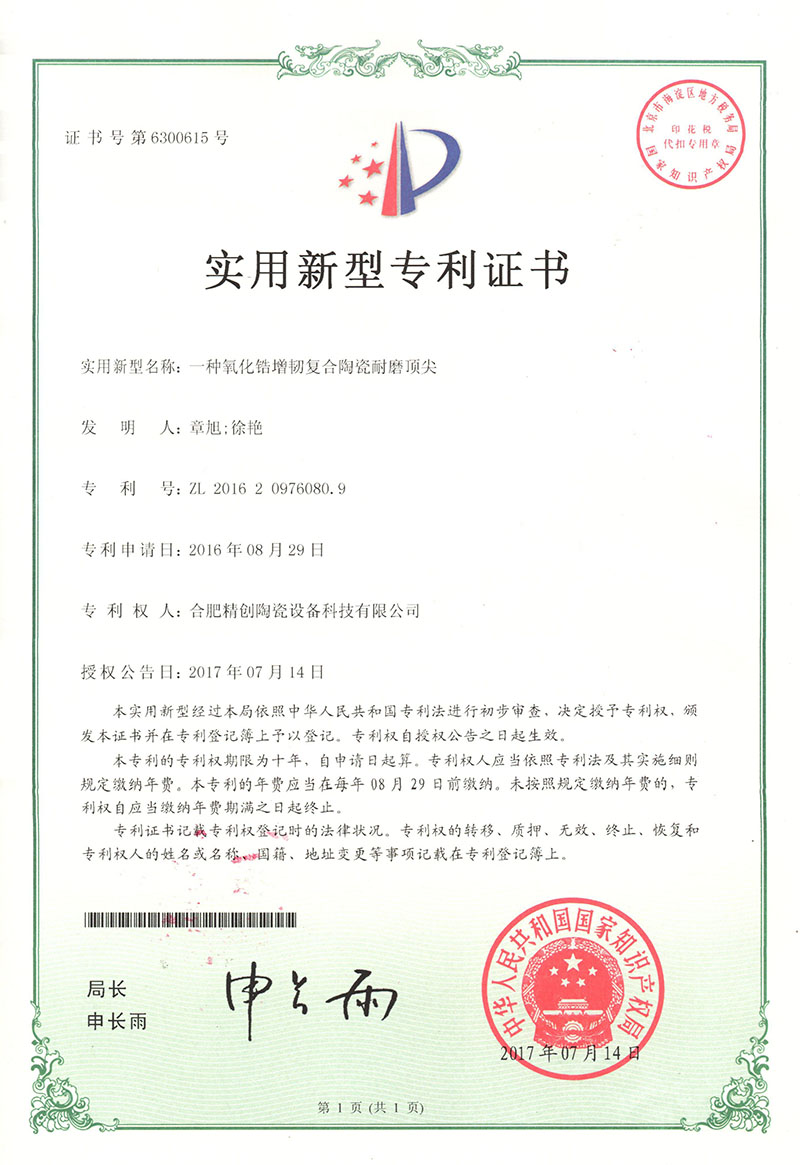(2017實(shí)用新型)一種氧化鋯增韌復(fù)合陶瓷耐磨頂尖